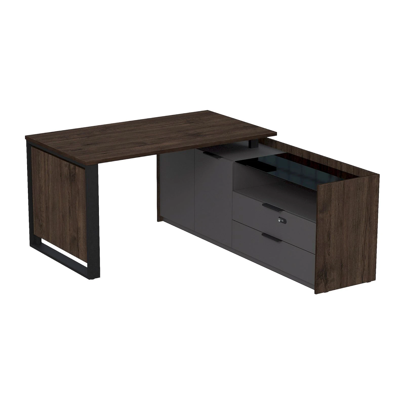 Стол рабочий на опорной двусост тумбе, с ящ (метаб), с код замком 1460x1768x750 Magnetic
